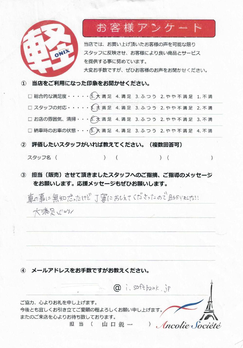 『おすすめ中古車』でエッセ・黄色ご購入の大阪府寝屋川市在住O様からのお声です。