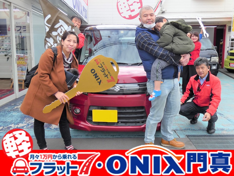 『新車リース・フラット7』にて『スペーシアカスタム』ご購入の大阪市城東区在住K様の笑顔です。
