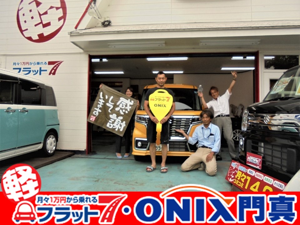 『新車リース・フラット7』にて『スペーシアカスタム』ご購入の大阪府門真市在住M様の笑顔です。